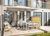 Auf dem Balkon oder auf der eigenen Terrasse in sonniger Südwestlage können sie gemütlich die frische Seeluft mit ihrer Familie oder ihren Freunden genießen.